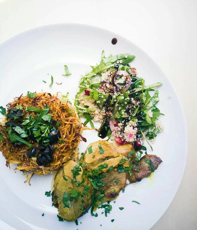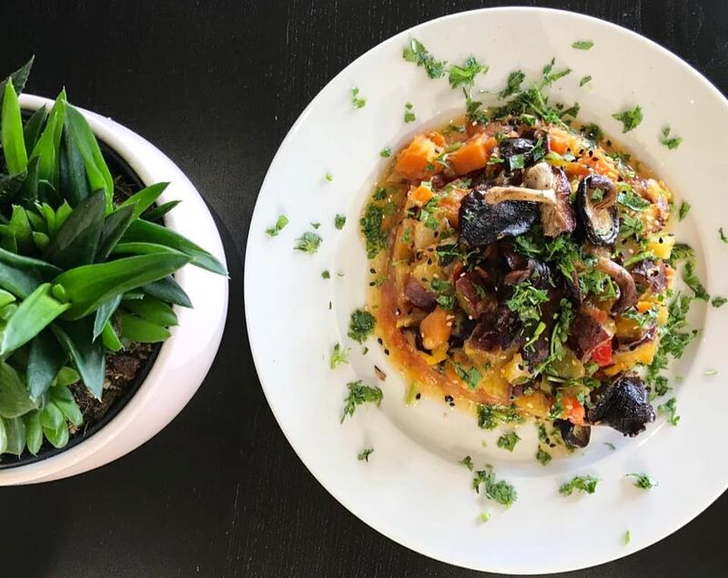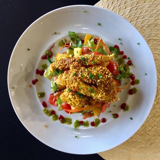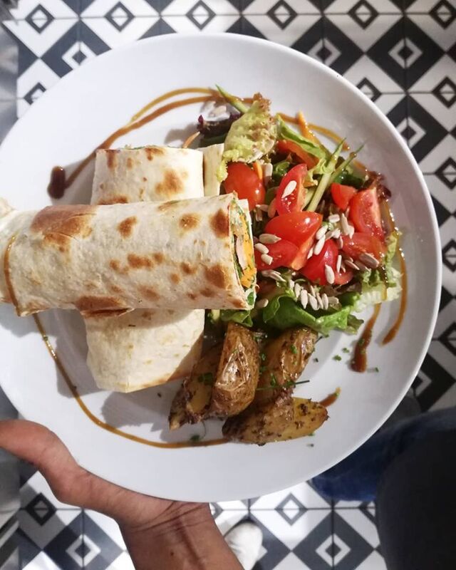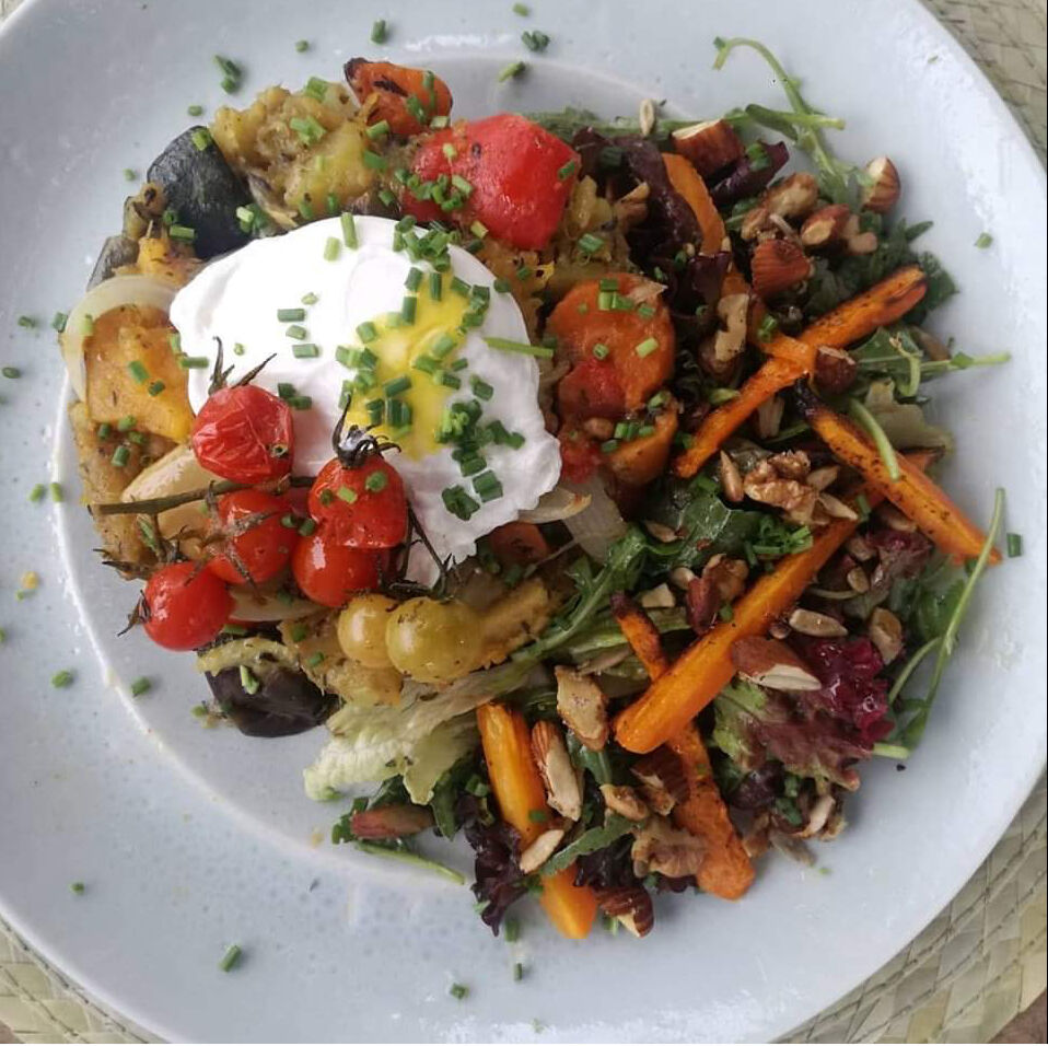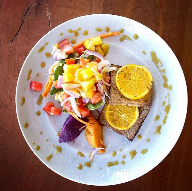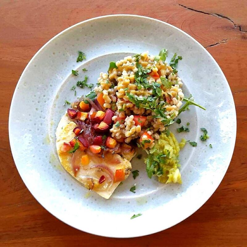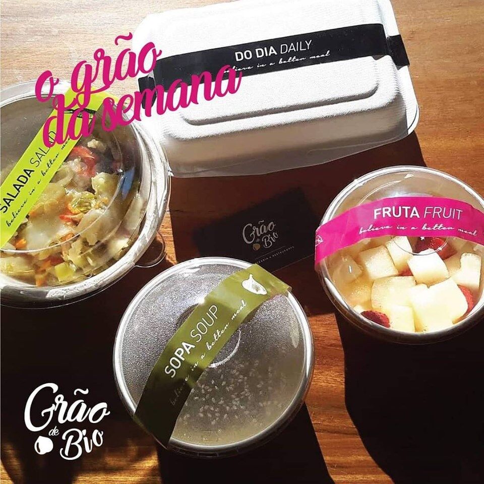 “Almoços saborosos, à base de produtos frescos e biológicos, são servidos todos os dias no Grão de Bio, que inclui uma mercearia.”